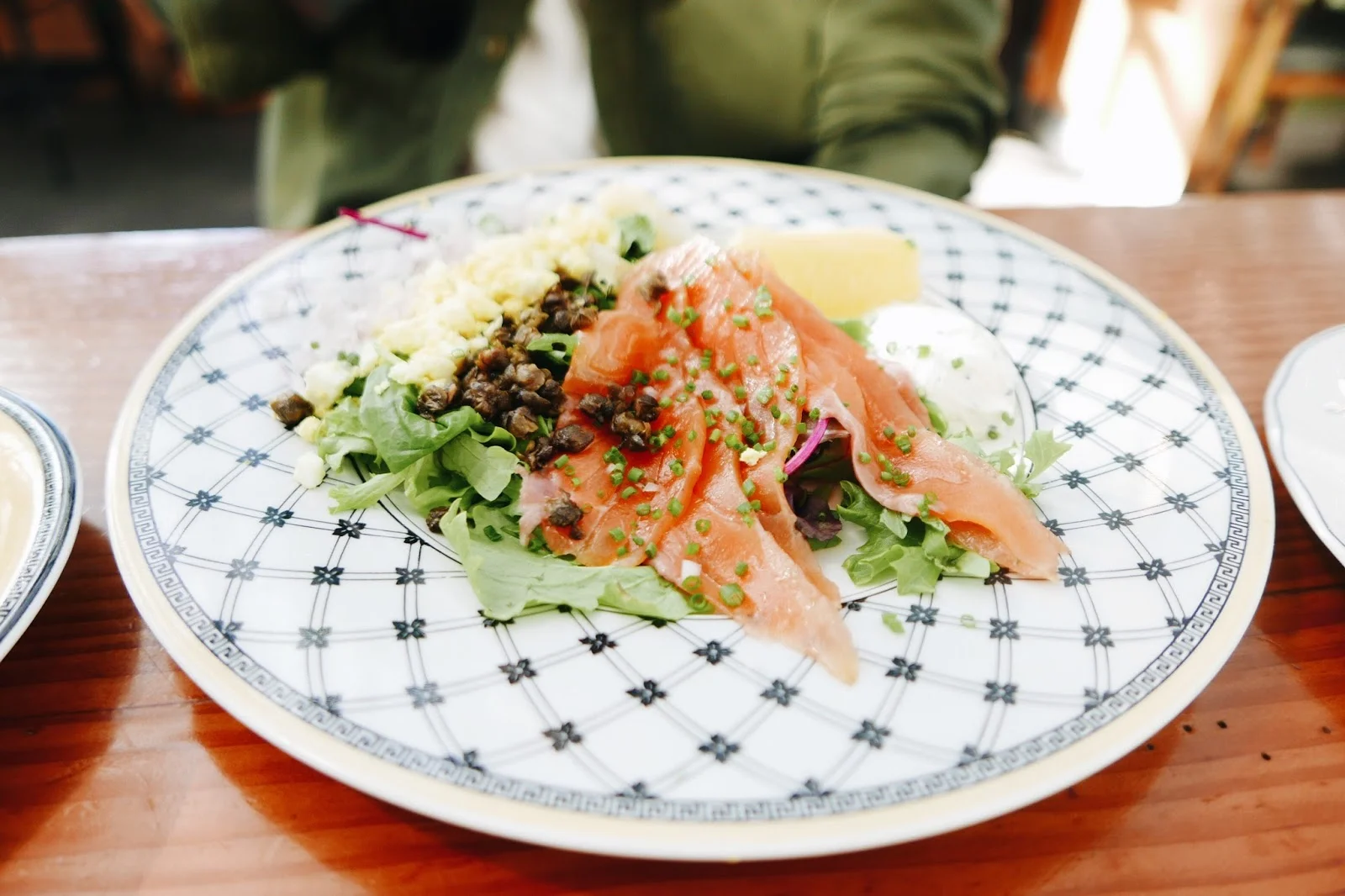 I also love that the mugs and glasses you are served with are all mix of vintage pieces and hand crafted ones. Makes you feel right at home or at granny's house. Not only is it pretty in the day time, I also reccomend going at night time. The fairy lights create such a warming atmosphere and it's a great place for dinner with friends. All the food is served family style which is lovely and different than to what I usually experience here in the UK. You get to sample so much food and when it comes to splitting the bill - it couldn't be any more simpler!